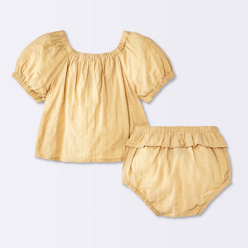 Baby Girls' 2pc Eyelet Seersucker Top and Bloomer Set - Cloud Island™ Yellow 18M