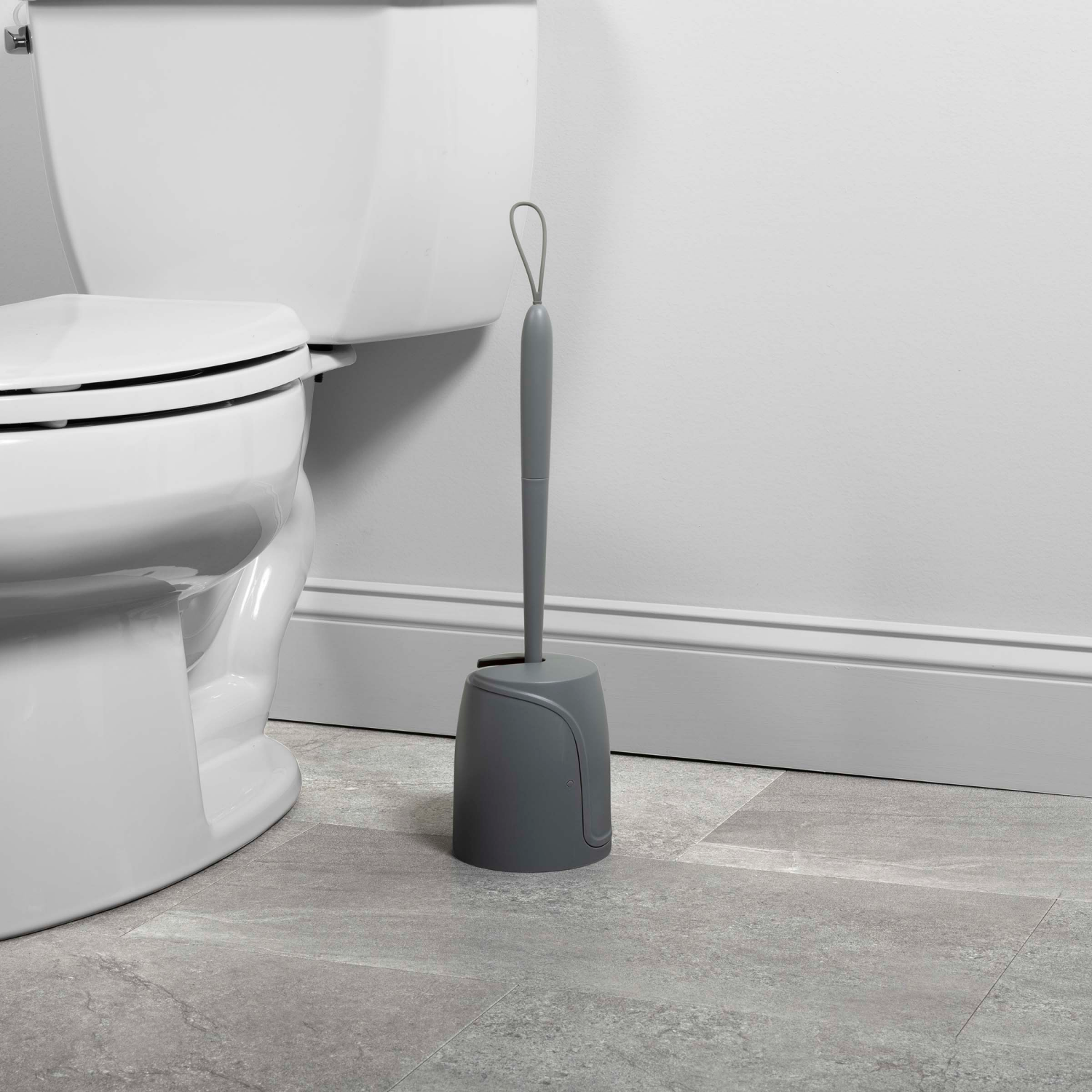 Zenna Home Toilet Bowl Brush Holder with Self-Closing Lid, Gray
