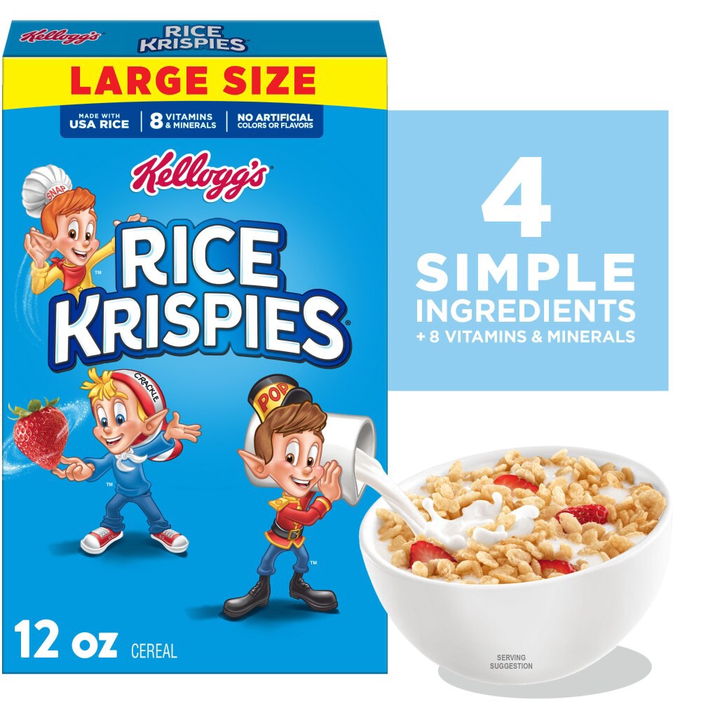 Kellogg's Rice Krispies Breakfast Cereal, 8 Vitamins and Mineral, Large Size, Original, 12oz Box (1 Box)