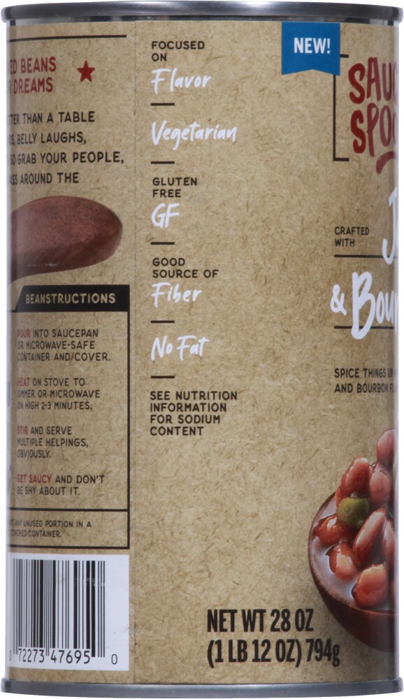 WELCOME TO THE SAUCY SIDE! Saucy Spoon Jalapeno & Bourbon Flavor Baked Beans in a 28 oz can are the baked beans of your dreams. We take perfectly prepared navy beans and spice things up with jalapeno …