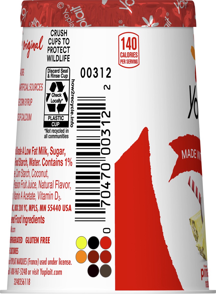 Yoplait Original Pina Colada Low Fat Yogurt, 6 oz Yogurt Cup