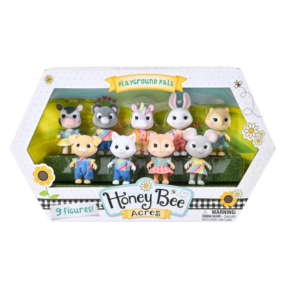 Meet the Playground Pals! These animal characters live in Honey Bee Acres and have become the best of friends! Each posable flocked figure wears a brightly colored outfit that is removable for fun fas…