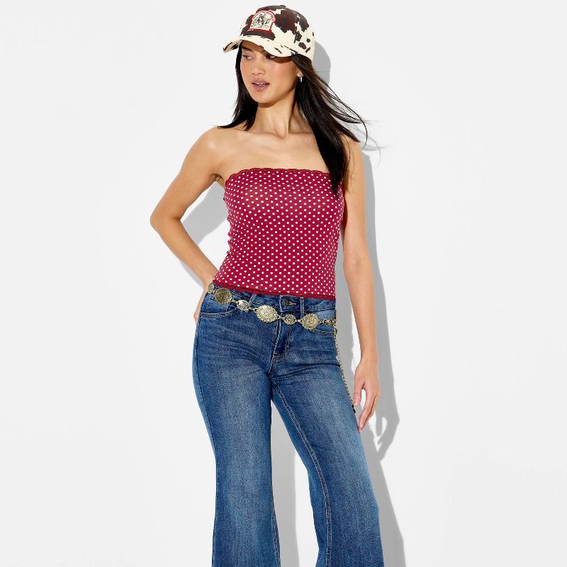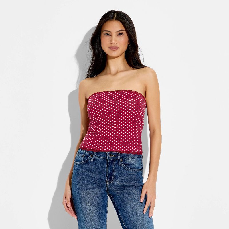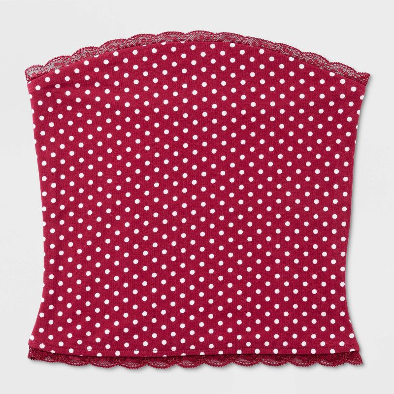 Women's Strapless Lace Trim Tube Top - Wild Fable™ Red Polka Dots L