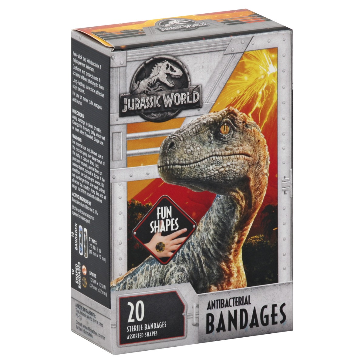 10 Bandages: Strips: 0.75 in x 3 in (19 mm x 76 mm). 10 Shaped Bandages: Spots: 1.25 in x 1.25 in (32 mm x 32 mm). Fun shapes. Sterile bandages. Assorted designs may vary. Not made with natural rubber…