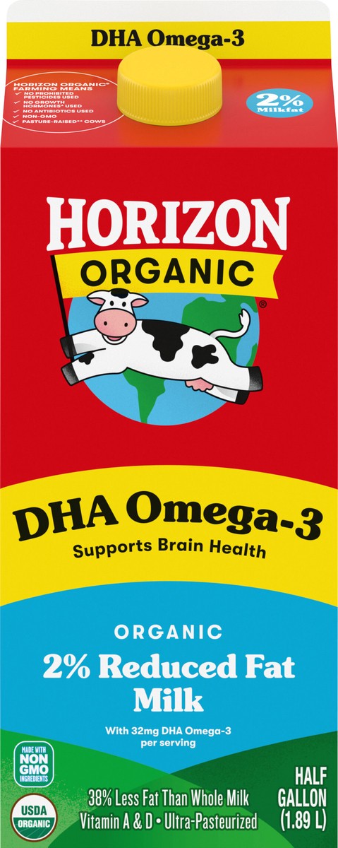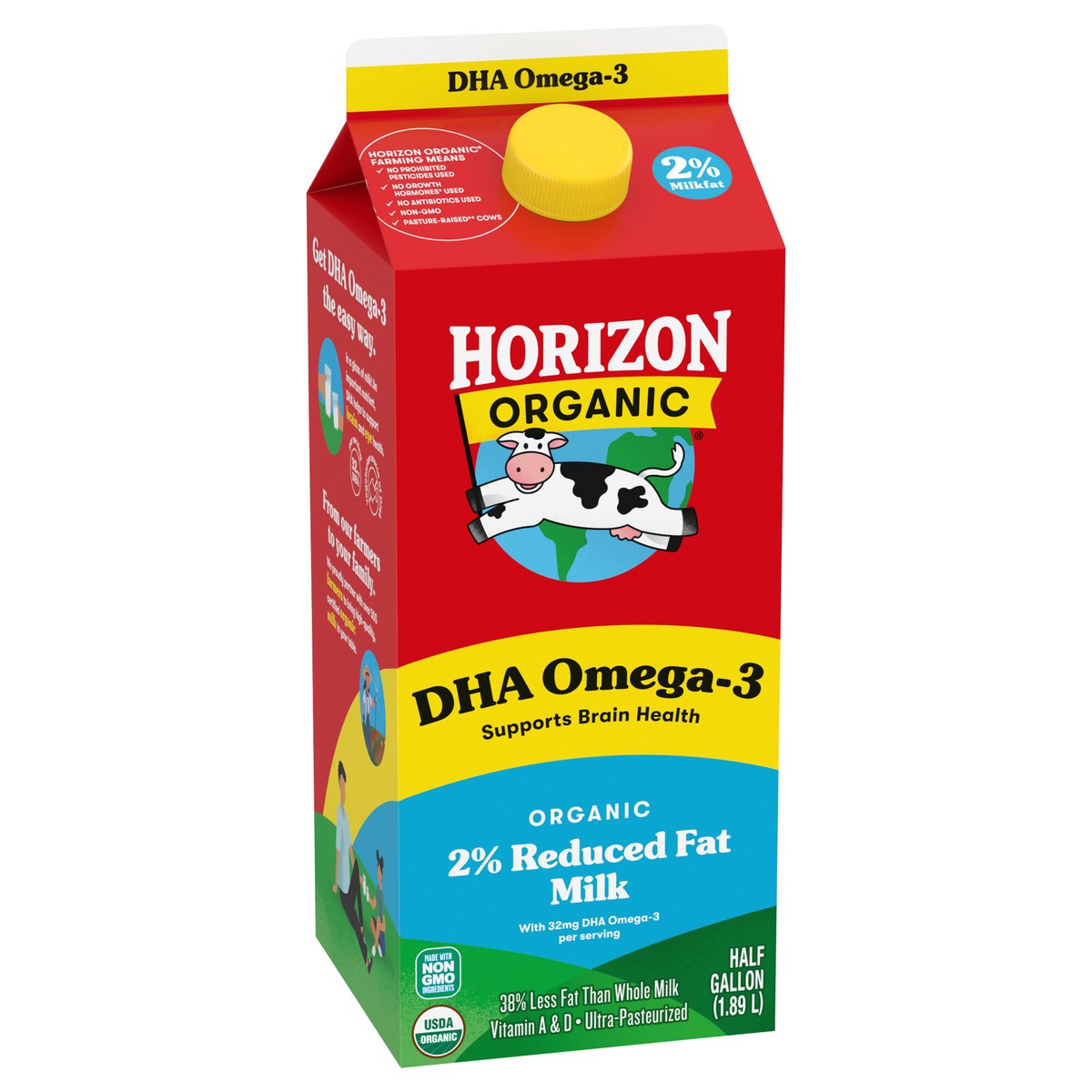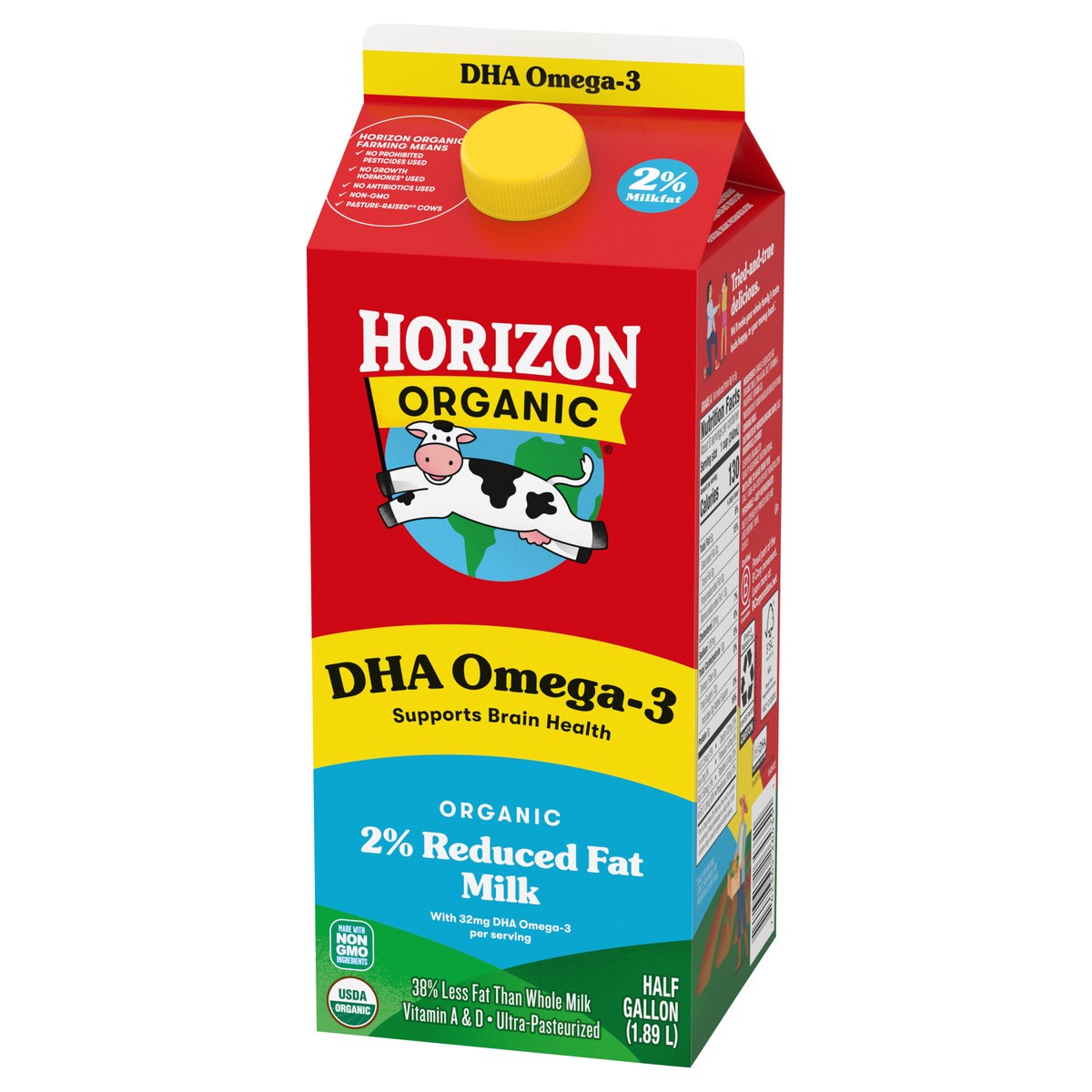 Get the joy of a cold glass of real milk with Horizon Organic DHA Omega-3 2 Percent Milk. With 32mg of DHA omega-3 from a vegetarian source in every delicious serving, this organic reduced fat milk ma…