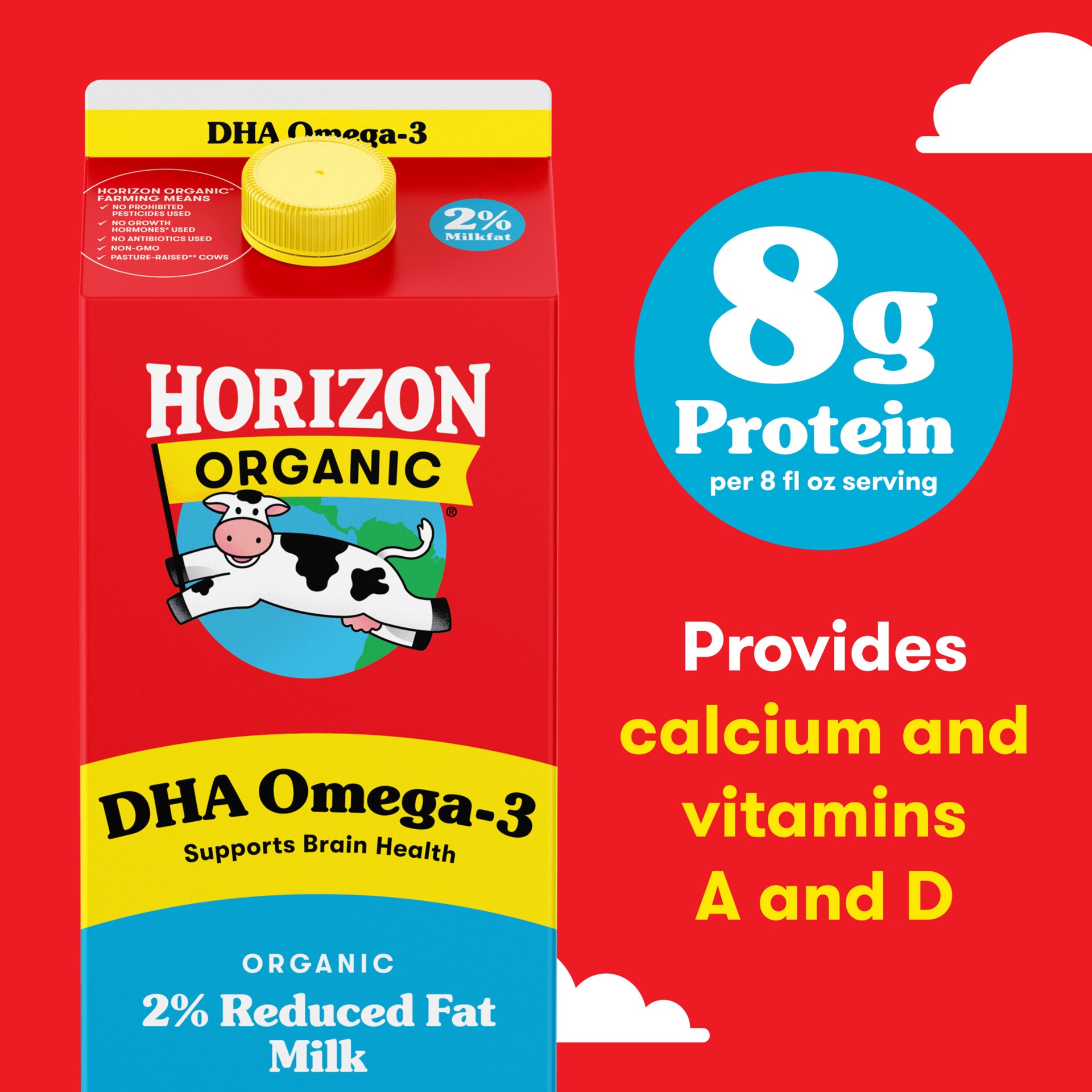 Get the joy of a cold glass of real milk with Horizon Organic DHA Omega-3 2 Percent Milk. With 32mg of DHA omega-3 from a vegetarian source in every delicious serving, this organic reduced fat milk ma…