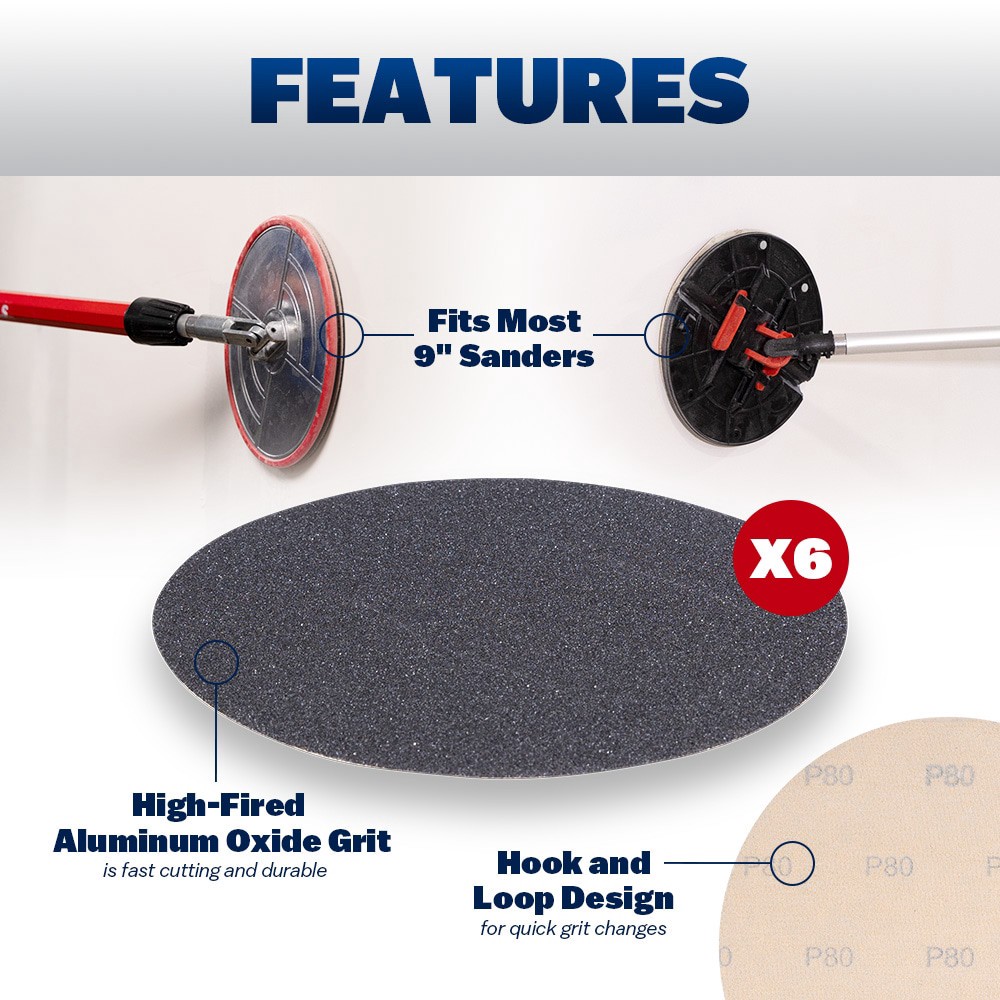 Ideal for heavy stripping to surface leveling on drywall, plaster, and paint. Fits most 9" sanders. Quick-change hook and loop design. High-fired aluminum oxide 80 grit and tough paper core. Each sleeā¦