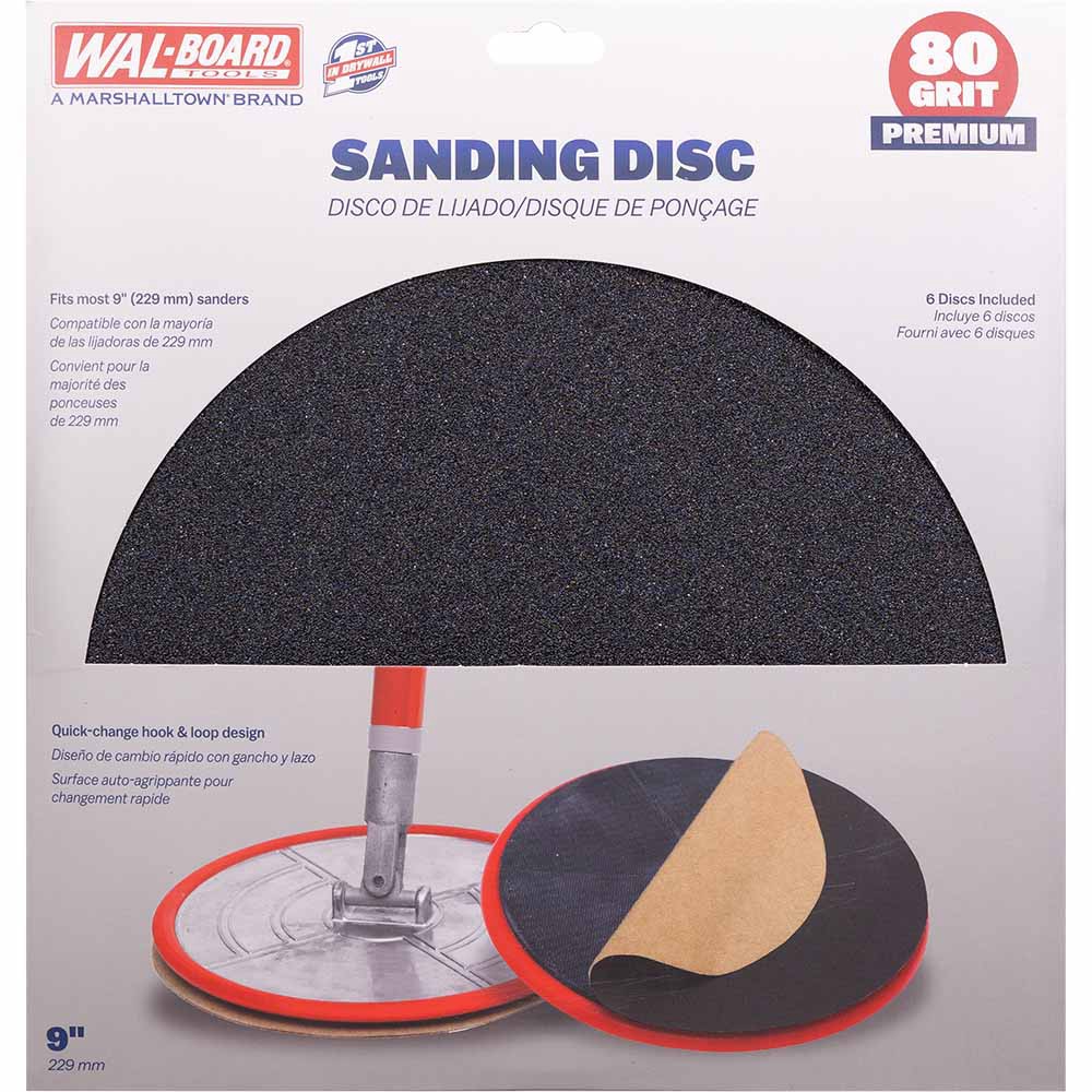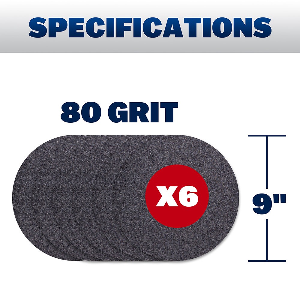 WAL-BOARD TOOLS Drywall Sanding Disc Coarse 80 -Grit Disc Sandpaper 9-in W x 9-in L 6 -Pack