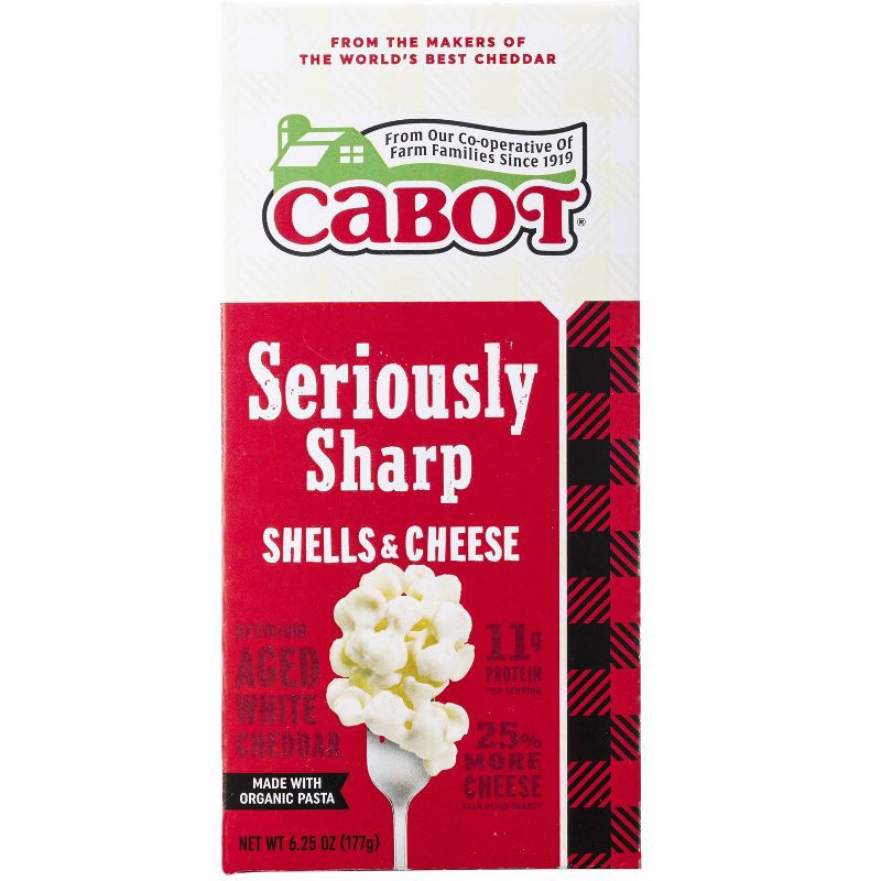 - Award-winning Cabot cheddar mixed with organic pasta