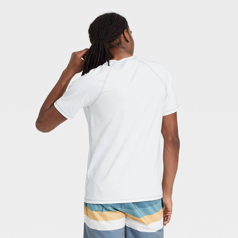 Men's Short Sleeve Rash Guard Swim Shirt - Goodfellow & Co™ White S: UPF 50+ Protection, Recycled Polyester, Spandex Blend