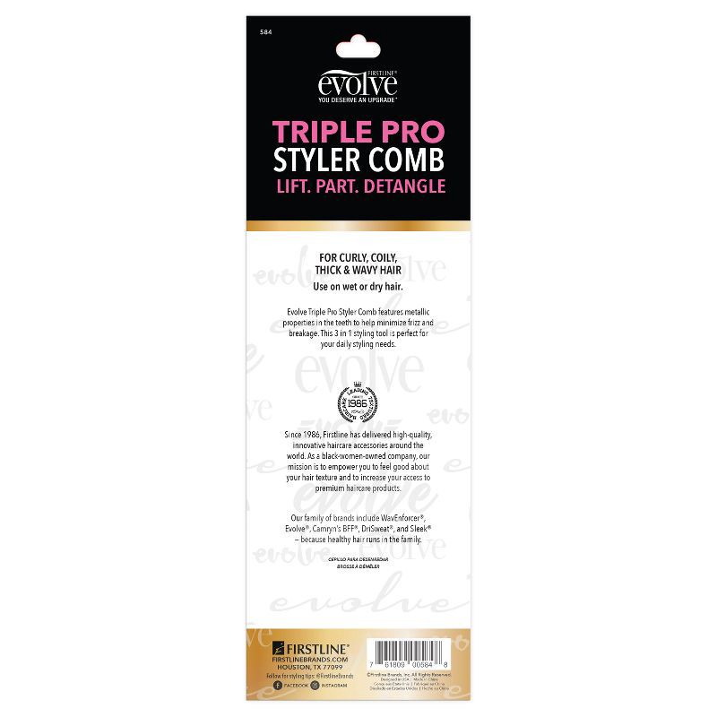 The Evolve Triple Pro Styling Comb is a 3-in-1 tool that detangles, parts, and styles with ease. Made from high-quality material, it's perfect for all hair types and ideal for both professionals and a…