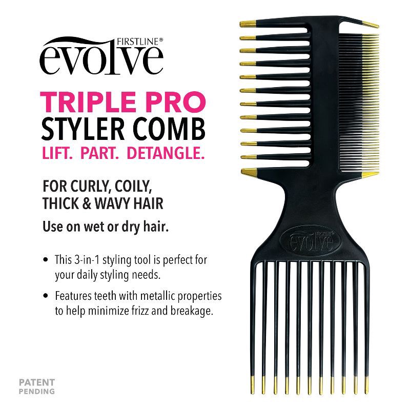 Evolve Products Triple Pro Styling Comb: Fine Tooth Plastic Hair Grooming Tool for All Hair Types