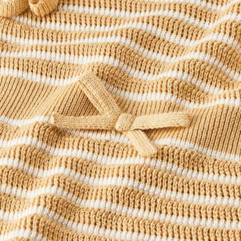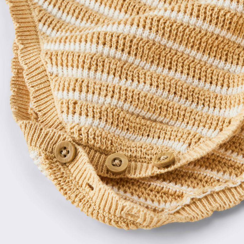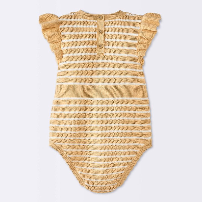 Baby Girls' Striped Ruffle Pointelle Sweater Tank Romper - Cloud Island™ Yellow 24M