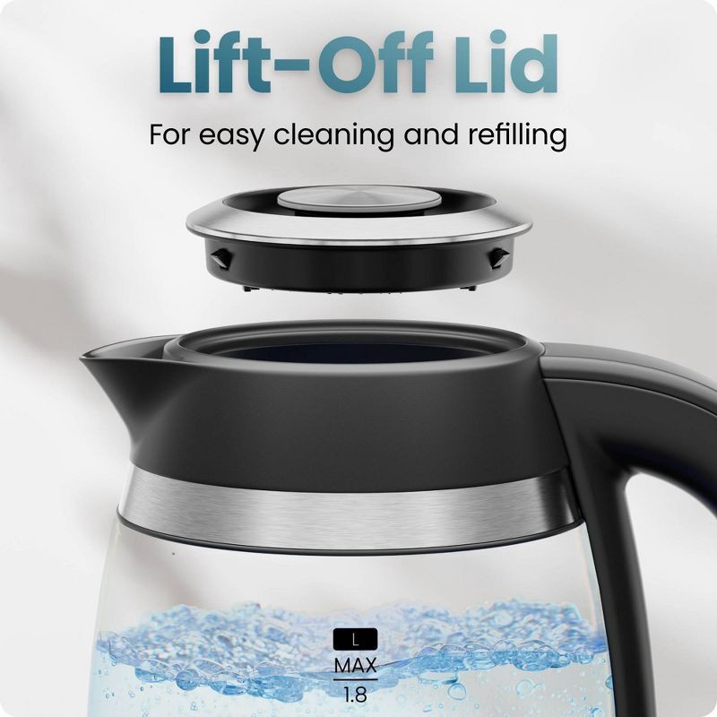 - SLEEK & STYLISH DESIGN: Elevate your kitchen's aesthetic with this borosilicate glass water kettle, complemented by stainless-steel accents and blue LED lights for a modern, sophisticated look.