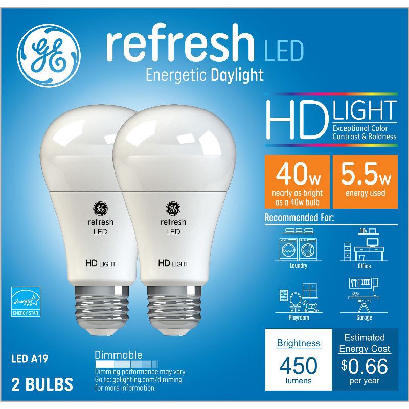 GE Household Lighting GE 2pk 40W Refresh A19 LED Light Bulbs Daylight