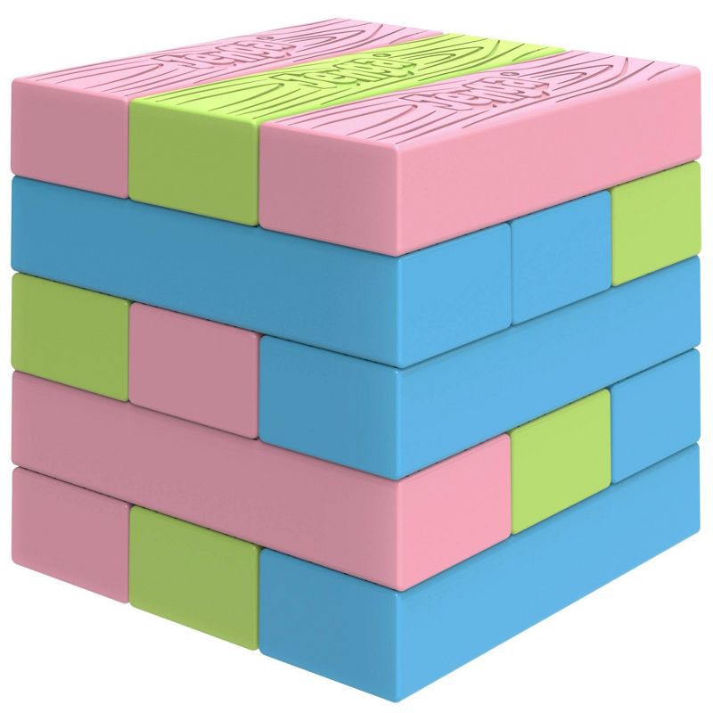 - MINI BLOCKS IN 3 COLORS: Includes 15 Jenga miniature plastic blocks in springtime shades of pink, green, and blue