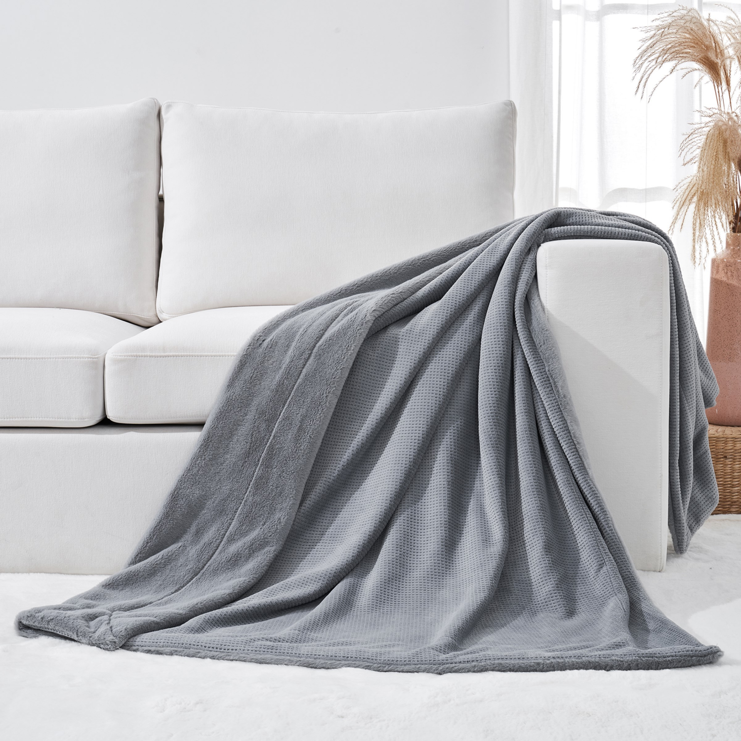 Room & Retreat Waffle Throw, 50 In X 70 In, Grey