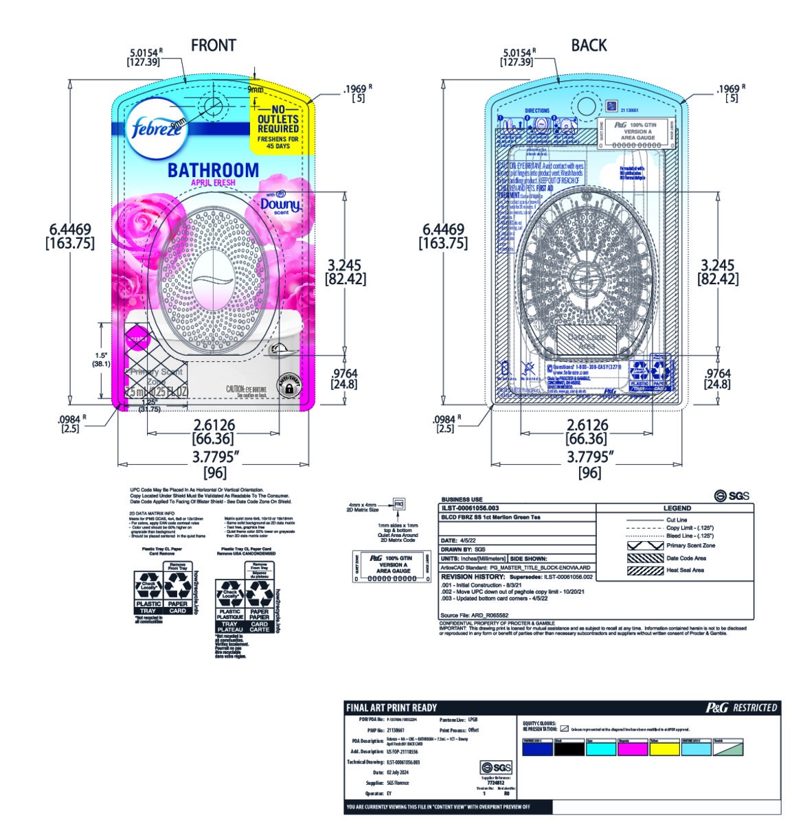 Febreze Bathroom Air Freshener, Odor-Fighting, Downy April Fresh Scent, 1 Count