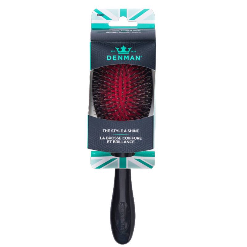 DENMAN Style & Shine Hair Cushion Brush - Black: Nylon & Boar Bristles, All Hair Types, 8.622" Length