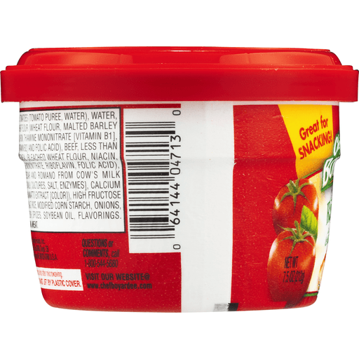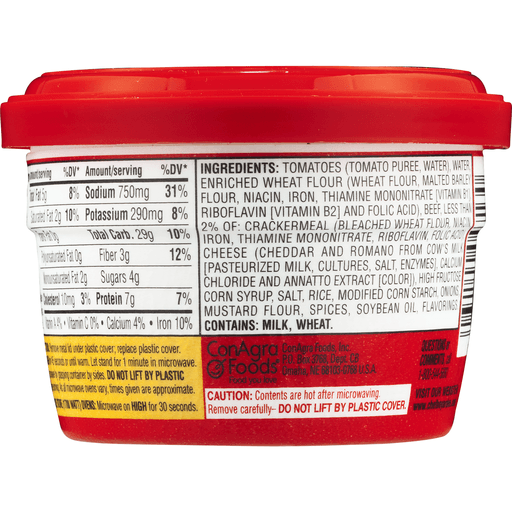 Tomatoes (Tomato Puree, Water), Water, Enriched Wheat Flour (Wheat Flour, Malted Barley Flour, Niacin, Reduced Iron, Thiamine Mononitrate [Vitamin B1], Riboflavin [Vitamin B2], Folic Acid), Beef, Less…