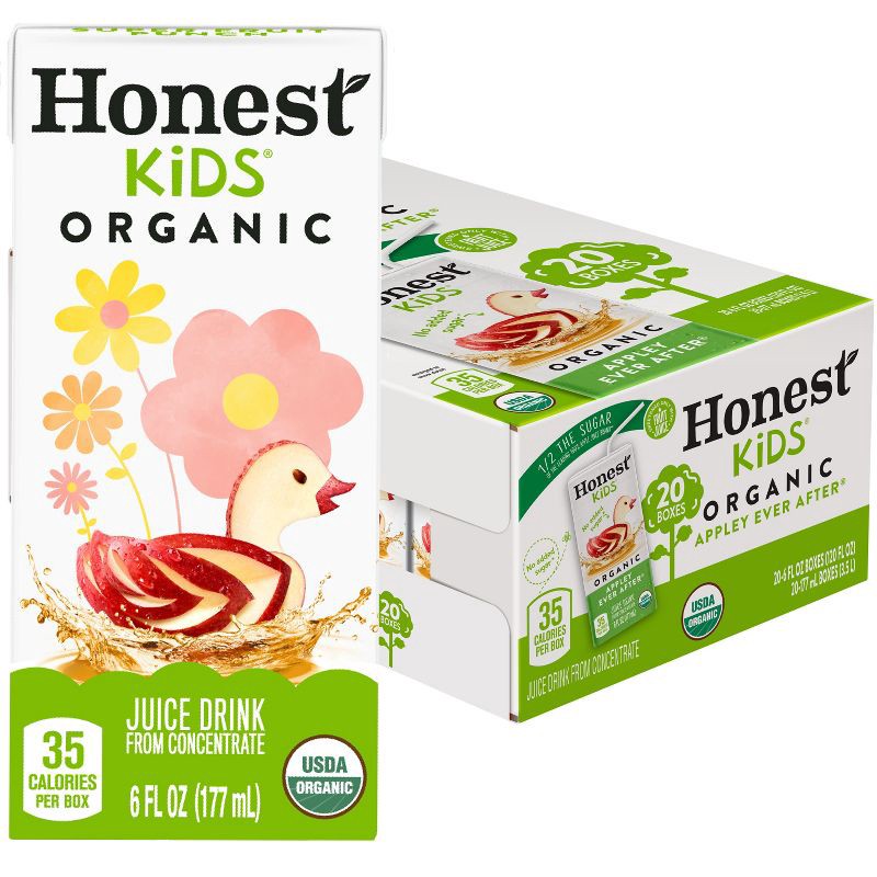 - Honest Kids organic apple juice drinks are made with real fruit juice, for a drink you can feel proud serving to your kids