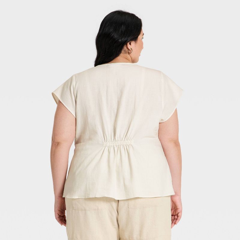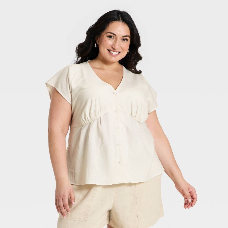 Women's Plus Dolman Short Sleeve Button-Front Seamed Top - Ava & Viv™ Cream 3X