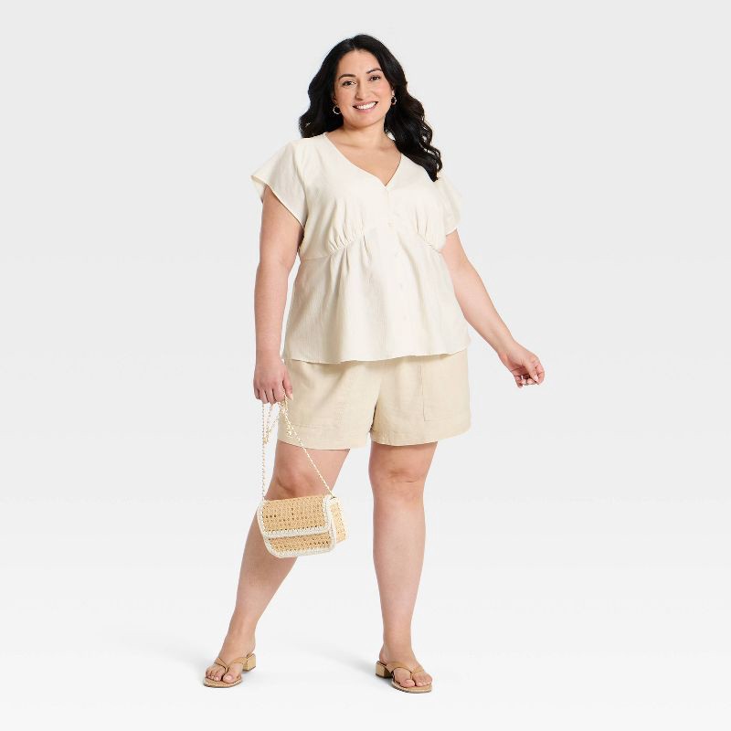 Upgrade your casual wardrobe with this Dolman Short-Sleeve Button-Front Seamed Top from Ava & Viv™. Made of 100% cotton, this seamed top keeps you cool and comfy from day to night. It features a V-nec…