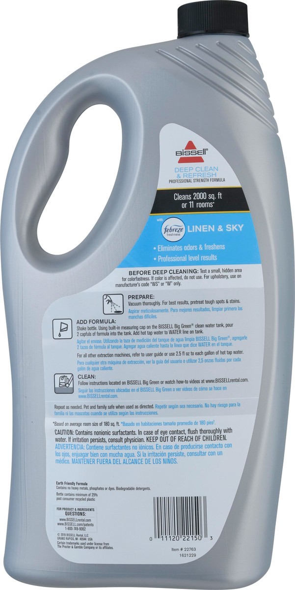 Every purchse saves pets. Removes deep down dirt & odors. Fresh, breeze-dried laundry scent. With Febreze freshness. Linen & sky. Professional strength formula. Cleans 2000 sq. ft or 11 rooms (based o…