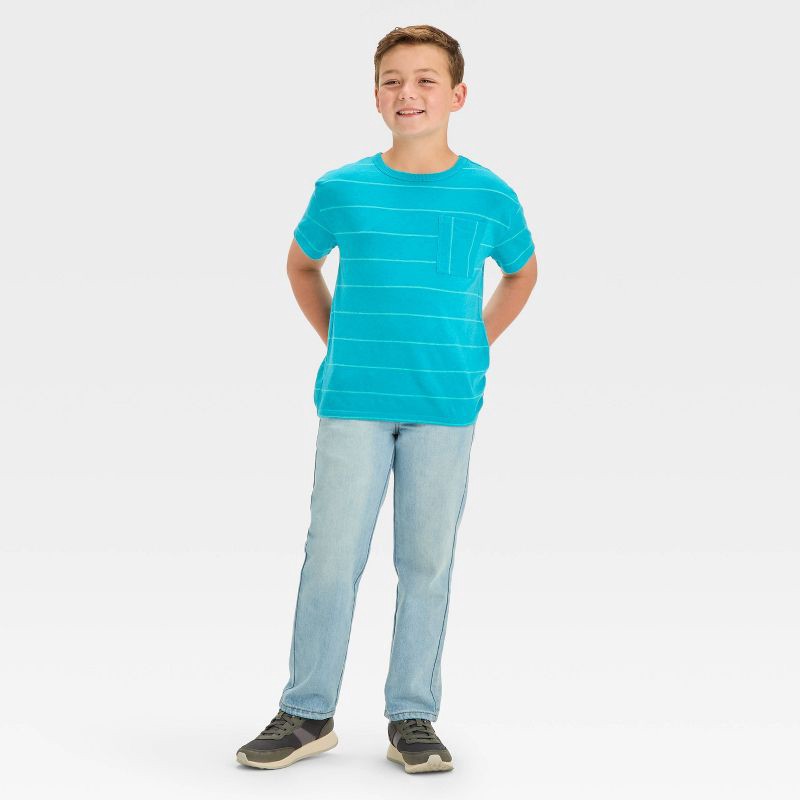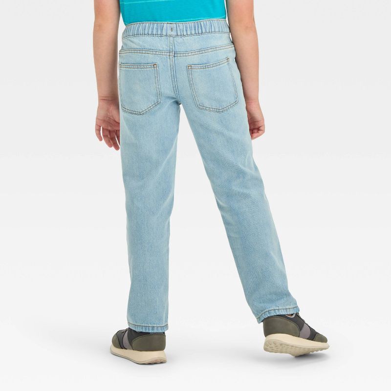 Boys' Straight Fit Pull-On Pants - Cat & Jack™ Light Blue 4: Denim, Elastic Waist, Mid Rise