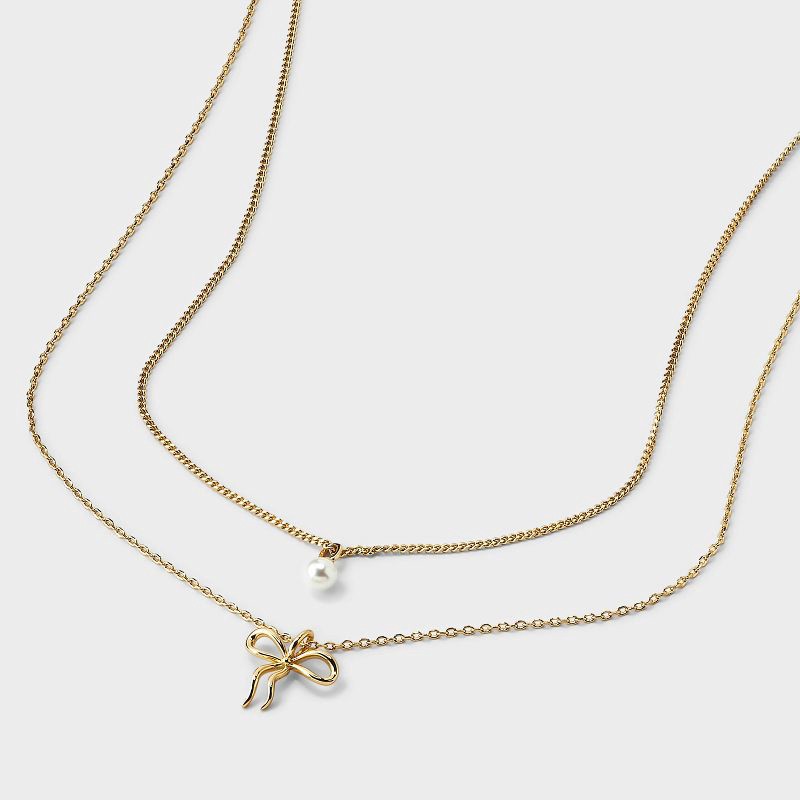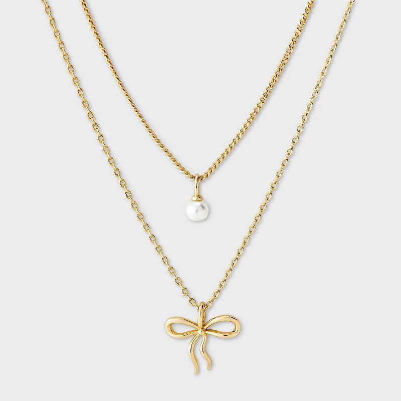 14k Gold Dipped Pearl & Bow Multi-Strand Necklace - A New Day™ Gold