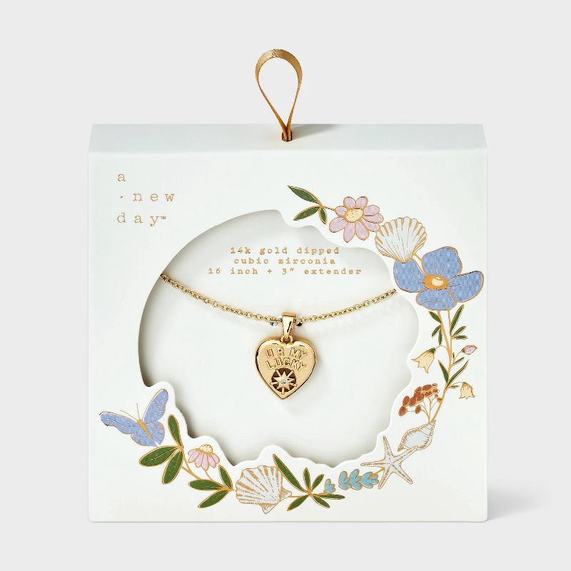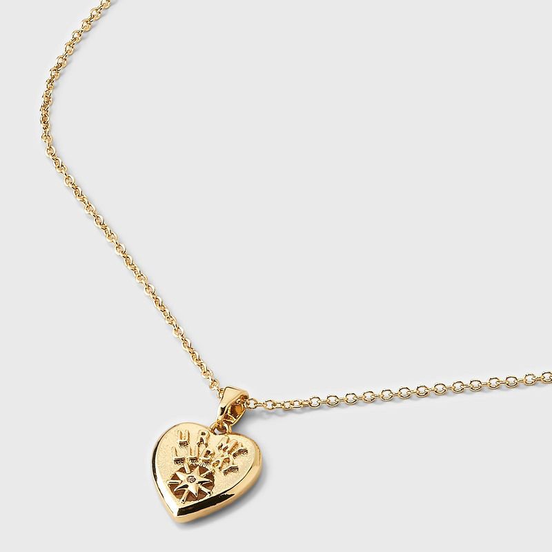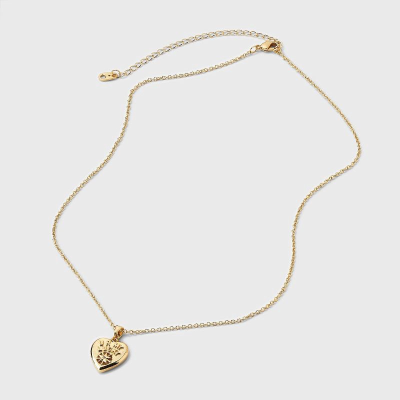 14k Gold Dipped Cubic Zirconia "U R My Lucky Star" Heart Twist Chain Necklace - A New Day™ Gold