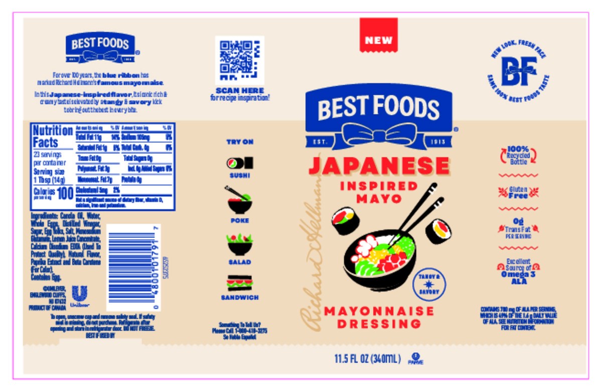 Best Foods Japanese Style Tangy & Savory Mayonnaise Dressing, 11.5 fl oz