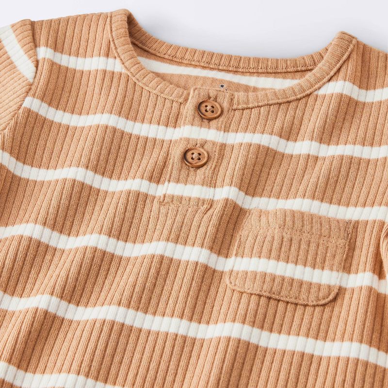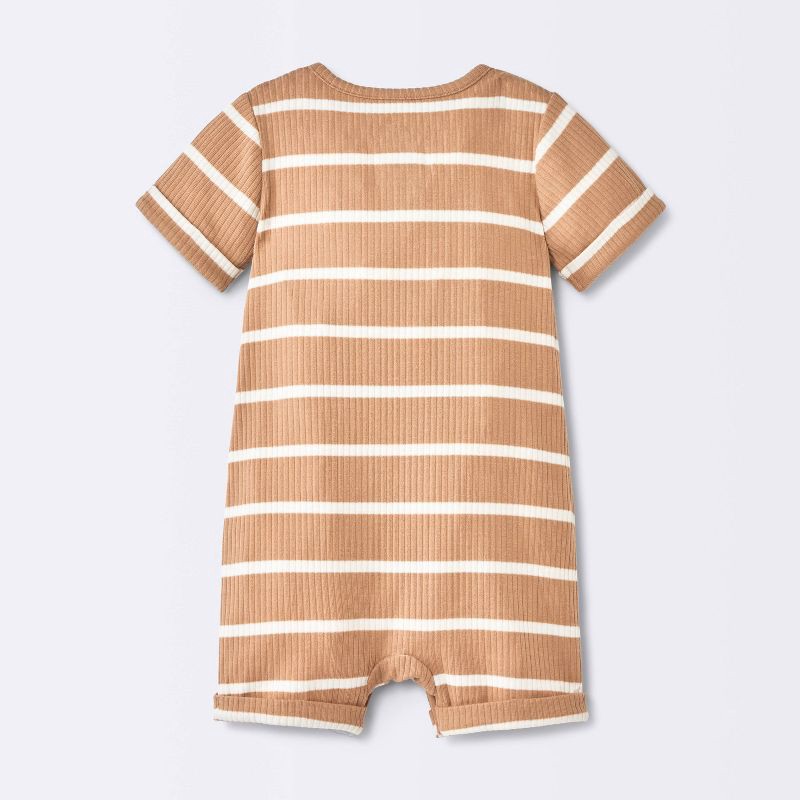 Baby Boys' Striped Henley Short Sleeve Romper - Cloud Island™ Brown Newborn