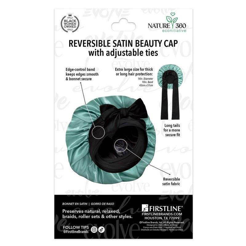 The Evolve Bonni Reversible Satin Beauty Cap offers breathable, single-layer satin protection designed to support a wide variety of hairstyles, including natural, relaxed, braided, and protective styl…