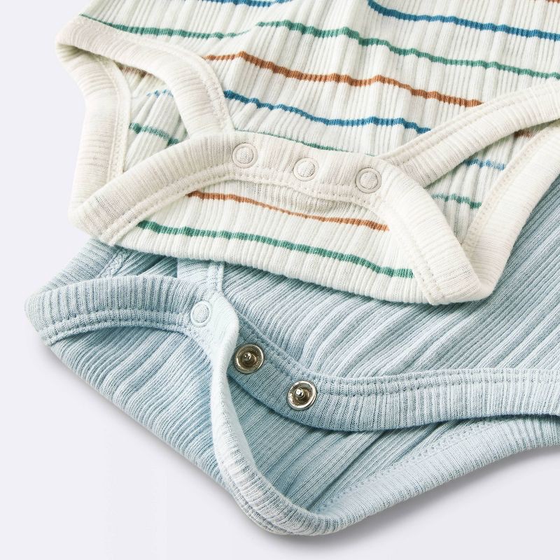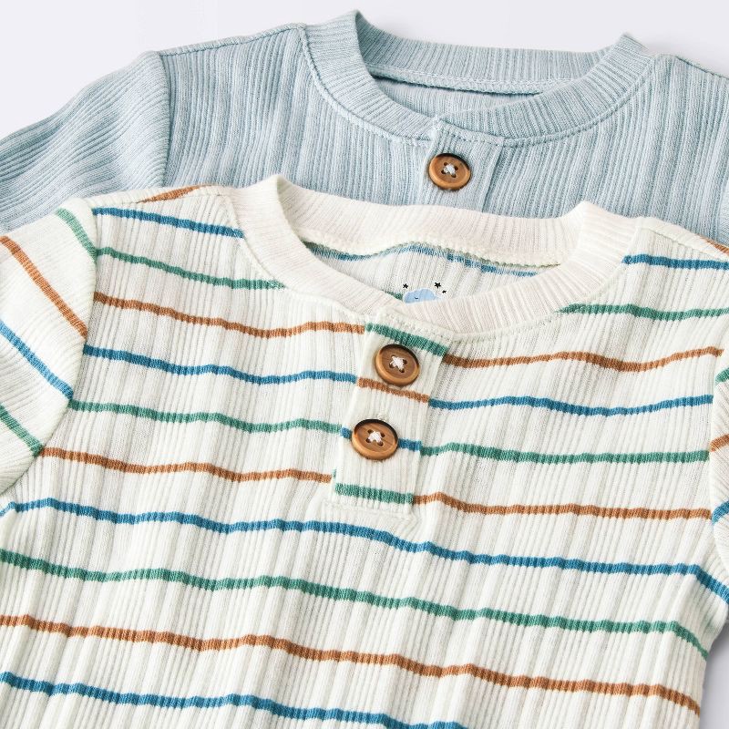 Baby Boys' 2pk Striped Short Sleeve Ribbed Bodysuit - Cloud Island™ Cream 3-6M