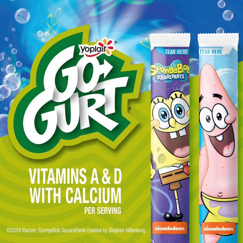 - SPONGEBOB YOGURT TUBES: Start your snacking adventures with gluten free Go-GURT, made with no high fructose corn syrup or colors from artificial sources; Contains vitamins A and D and is a good source of calcium