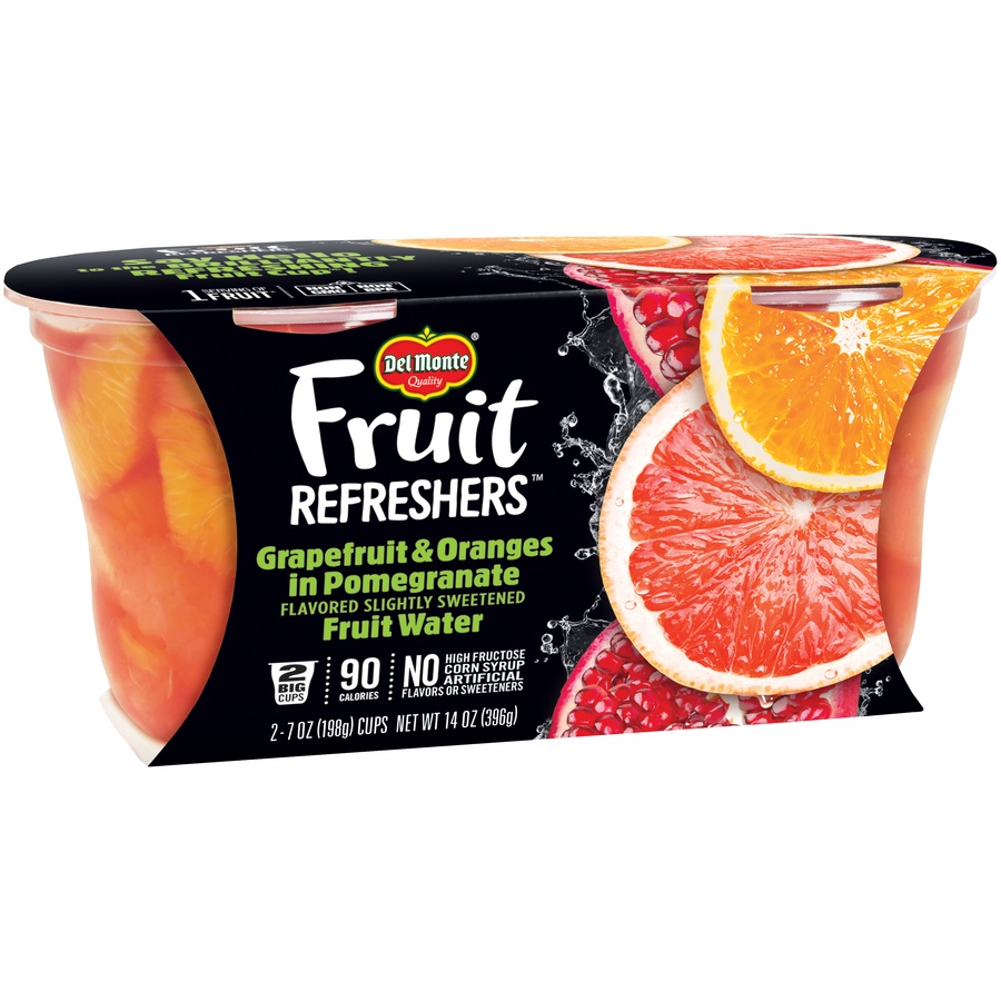 Del Monte Fruit Refreshers Grapefruit and Oranges Fruit Cup Snacks, 7 oz Cup (Pack of 2)