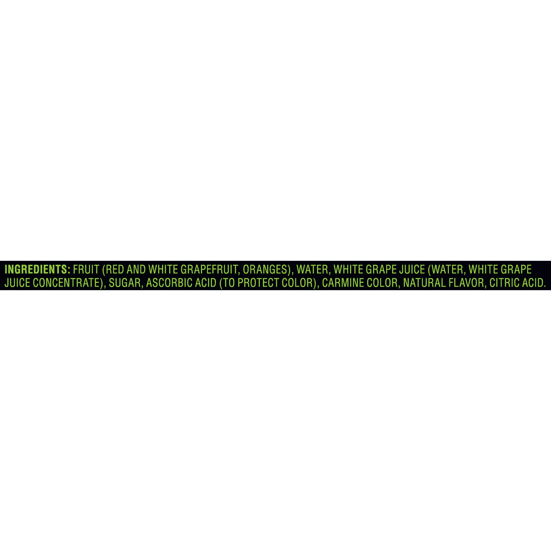 Fruit (Red and White Grapefruit, Oranges), Water, White Grape Juice (Water, White Grape Juice Concentrate), Sugar, Ascorbic Acid, Carmine Color, Natural Flavor, Citric Acid.