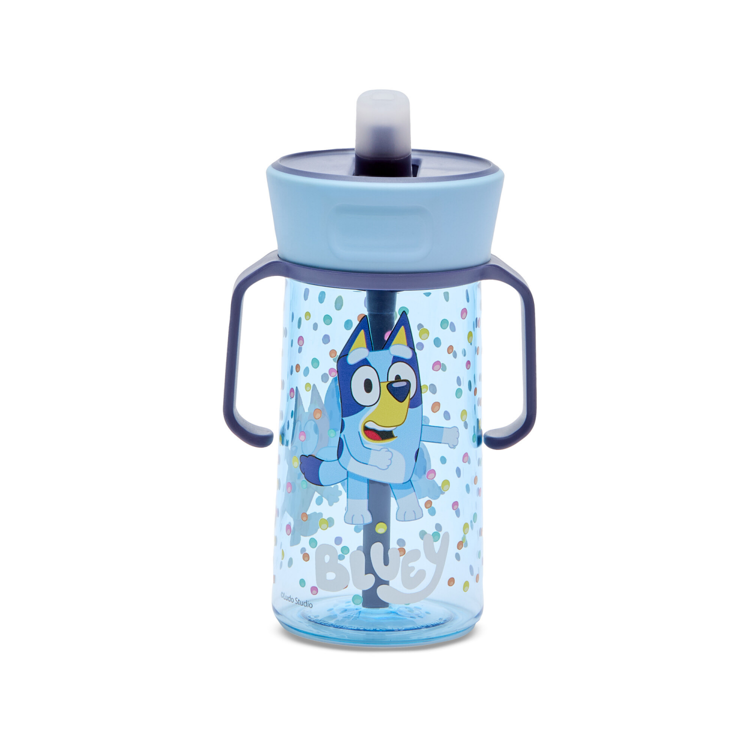 Pop to sip with Bluey! This toddler water bottle gives clean sips thanks to the pop-up straw with an antimicrobial silicone spout* that stores flat when not in use. A quick push pops it up for sipping…
