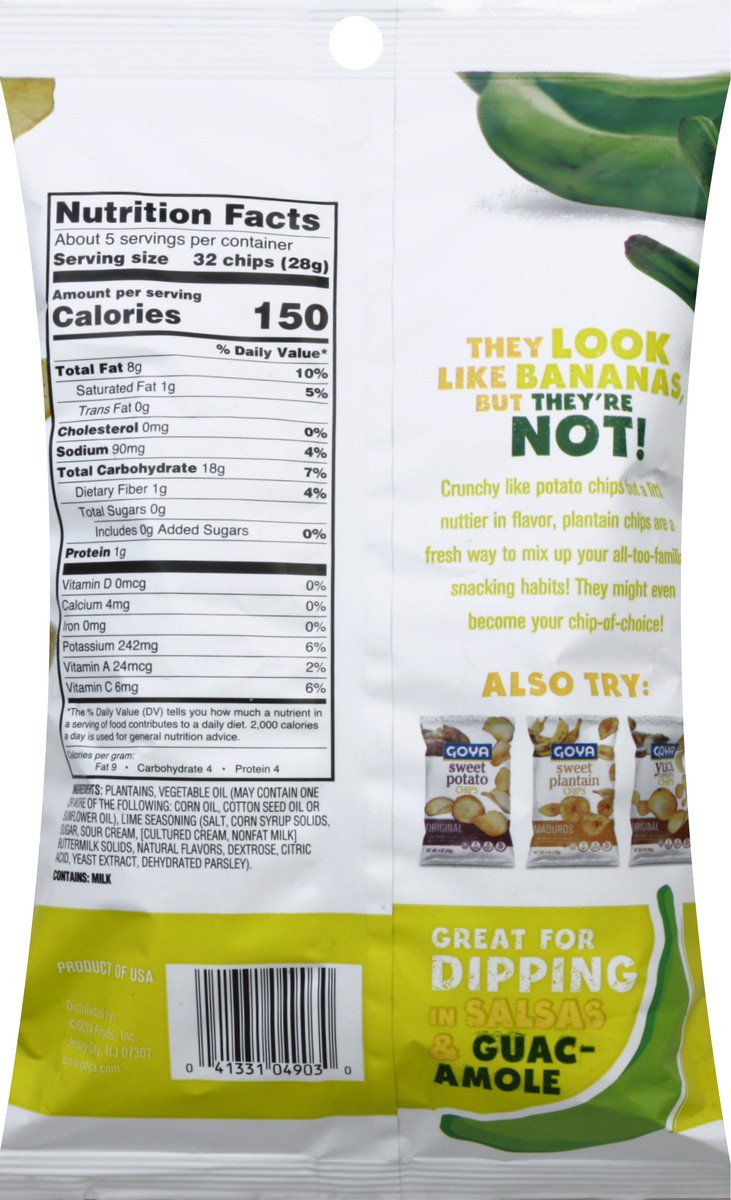 0g Trans fat. Low Sodium. Lightly salted and cooked to crispy perfection, these aren''t ordinary chips; Great for dipping in salsas & guacamole. www.goya.com. Also try: Goya sweet potato chips, sweet …