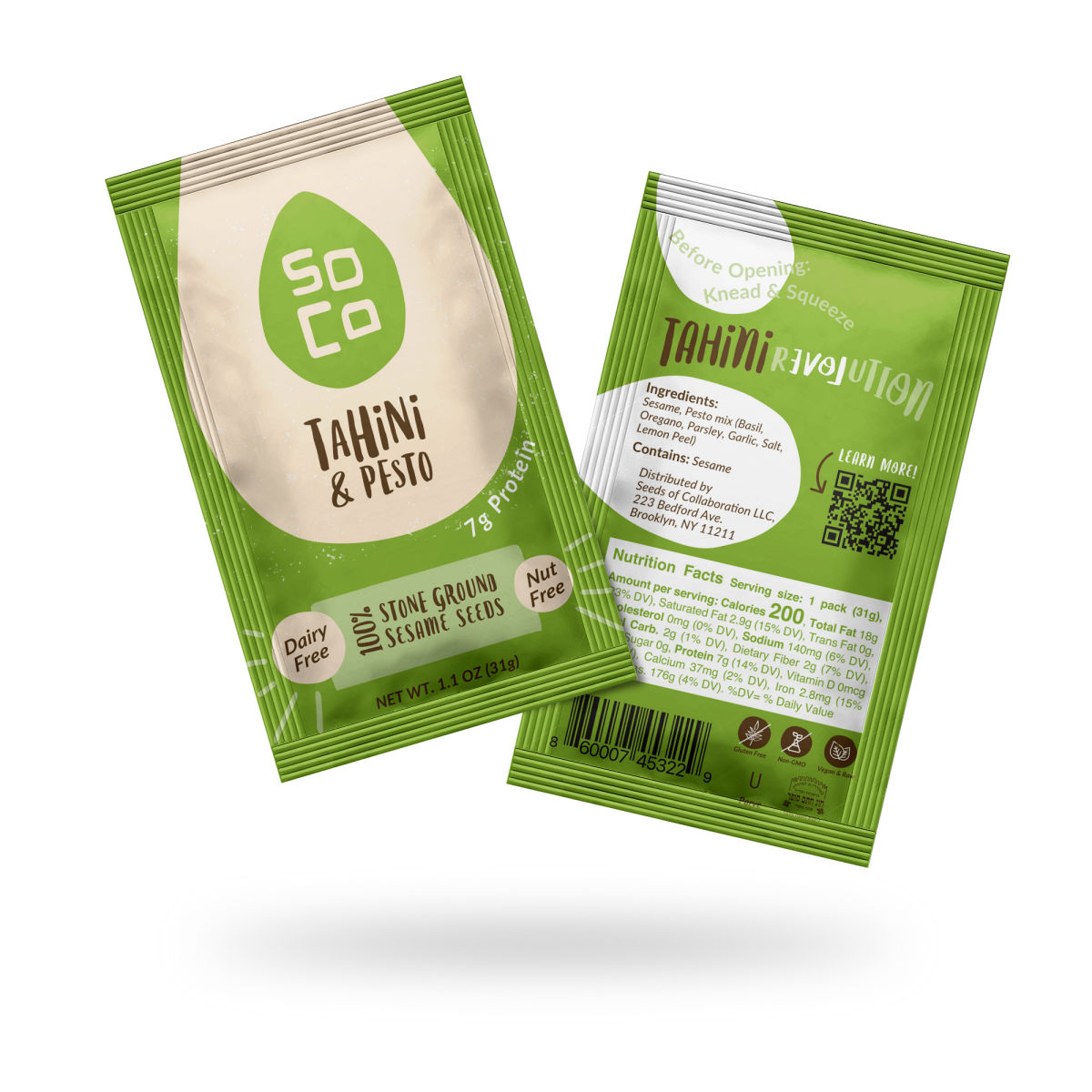 SoCo is a women owned certified, mission driven brand, bringing quality and innovation into the tahini category. Our Tahini & Pesto is non GMO project certified, made out of a herby bright seasoning b…