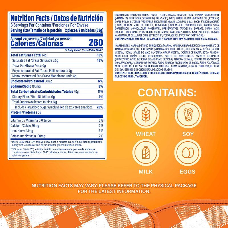 Wheat Flour, Sugar, Eggs, Vegetable Oil (Cottonseed Oil), Water, Xanthan Gum, Glycerin, Corn Syrup, Vegetable Shortening (Hydrogenated Palm and Fractionated Palm Oil), Food Starch-Modified (Corn), Lea…