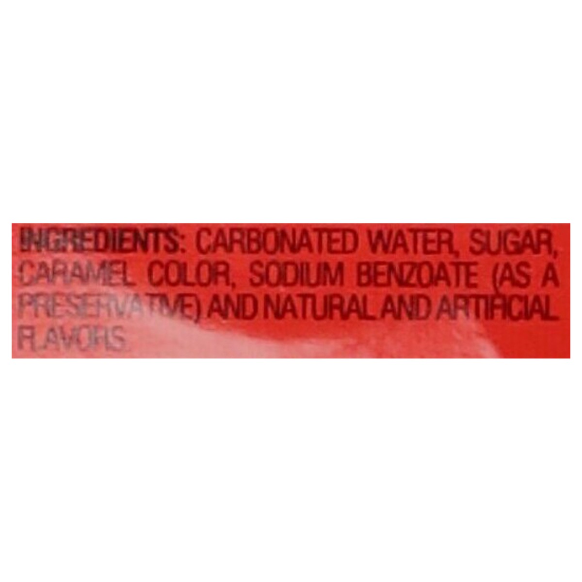 Carbonated Water, Sugar, Caramel Color, Sodium Benzoate (as a Preservative) and Natural and Artificial Flavors.