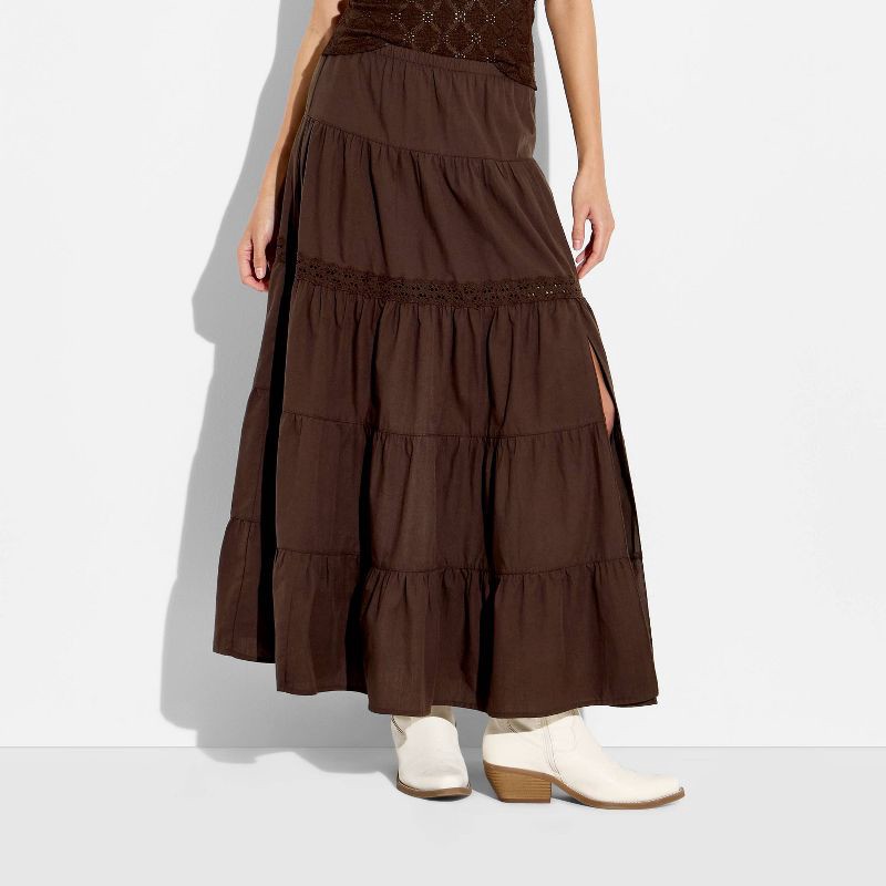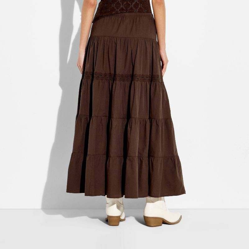 Women's Lace Inset Tiered Maxi Skirt - Wild Fable™ Brown XS