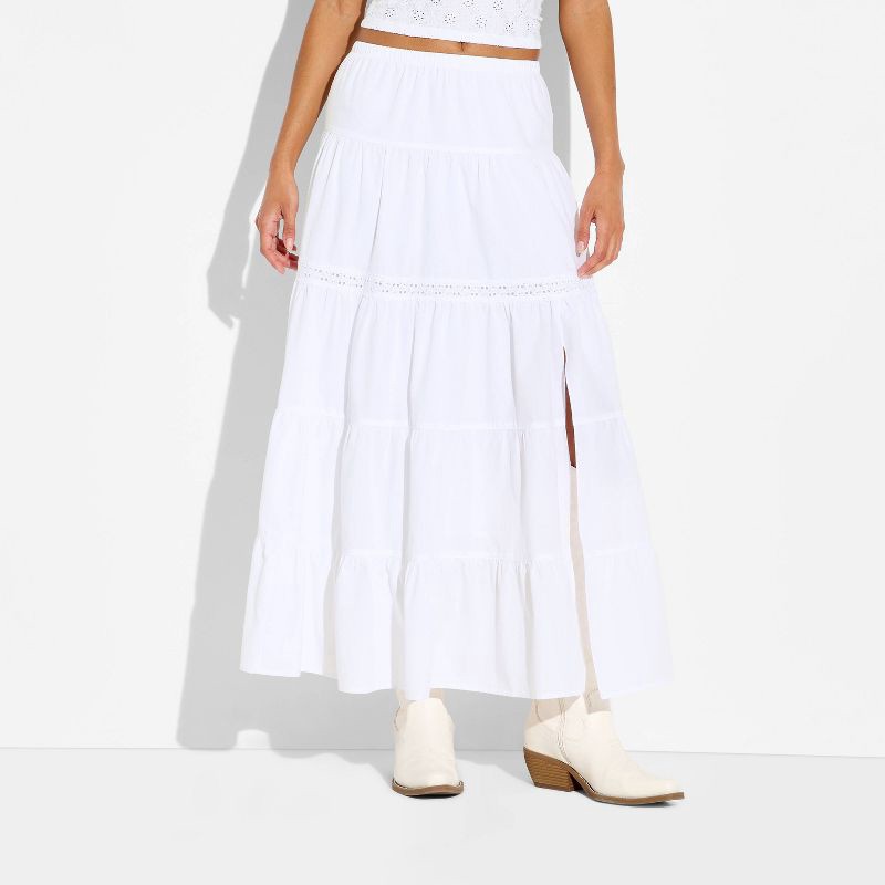 Women's Lace Inset Tiered Maxi Skirt - Wild Fable™ White XS
