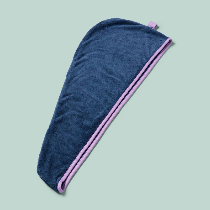 - Plush hair towel in a blue hue