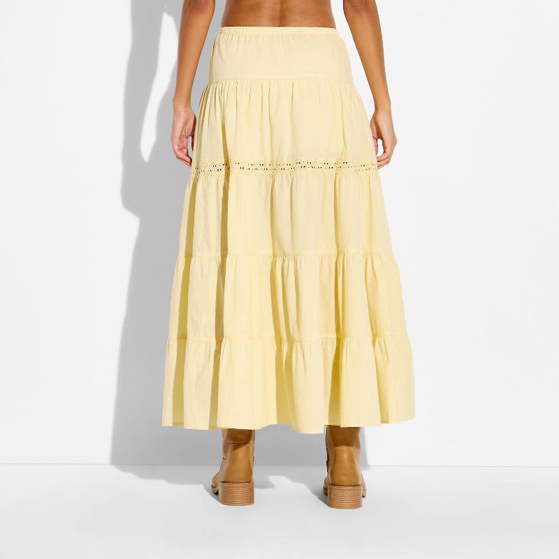 Women's Lace Inset Tiered Maxi Skirt - Wild Fable™ Yellow XL
