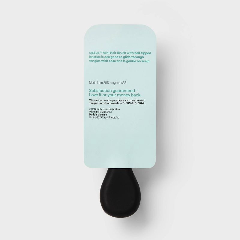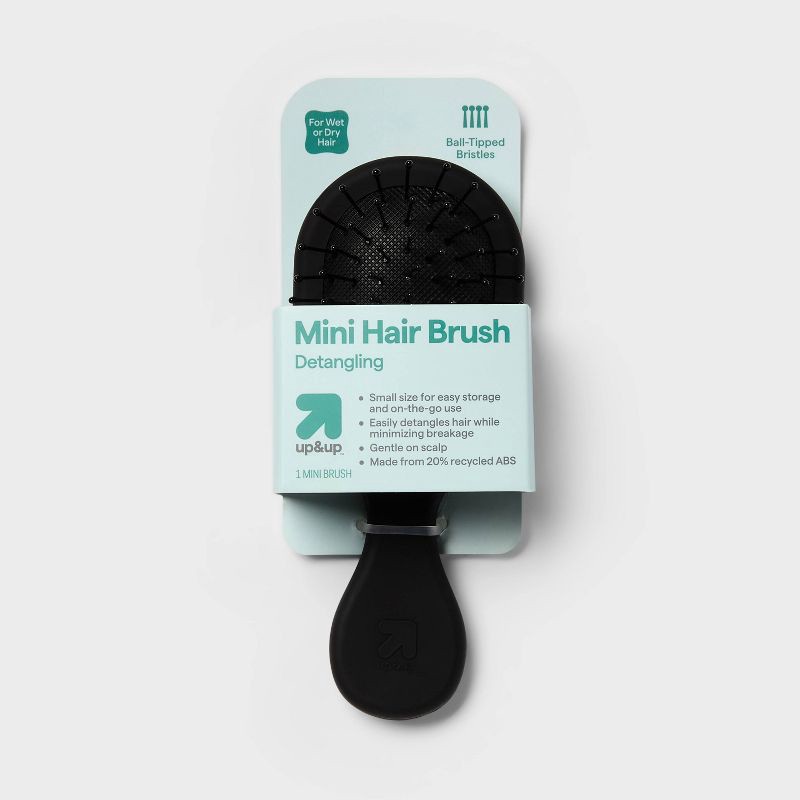Upgrade your personal grooming tools with this Mini Hair Brush from up&up™. Made from 20% recycled ABS, this mini hair brush has flexible and ball-tipped nylon bristles that glide through hair effortl…