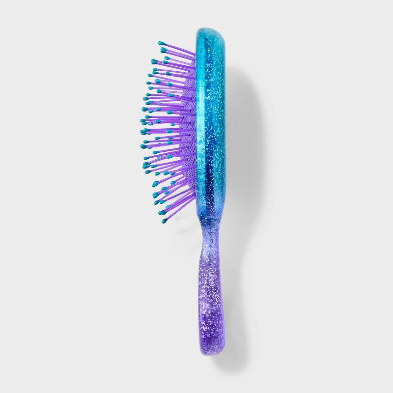 Simplify hair care for your child with this Mini Detangling Hairbrush from Cat & Jack™. This hairbrush has a bright blue and purple glitter design that looks great on the vanity, while the mini size f…