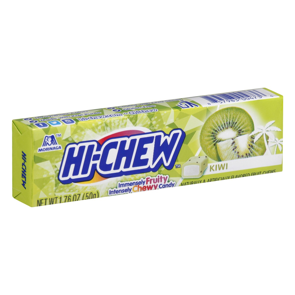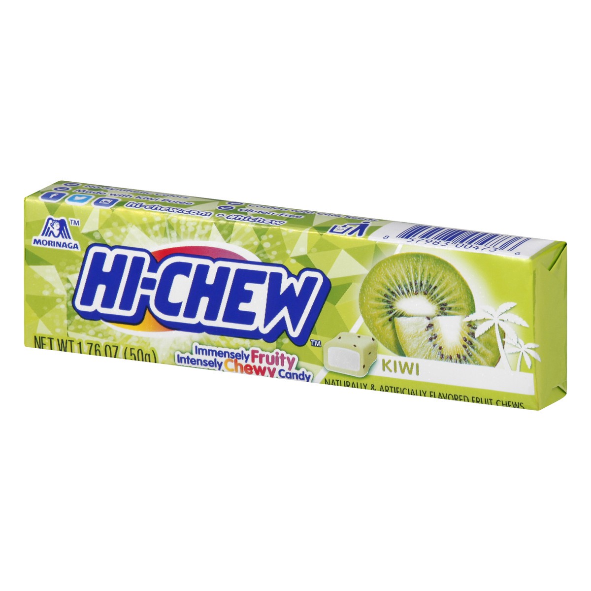 Naturally & artificially flavored fruit chews. Gluten-free. Immensely fruity. Intensely chewy candy. No synthetic colors. Made with kiwi puree. Fruit flavor released in every chew. hi-chew.com. Facebo…